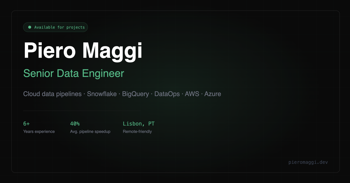 I work with companies that need senior data engineering expertise — whether that's building something from scratch, fixing what's broken, or scaling what exists.